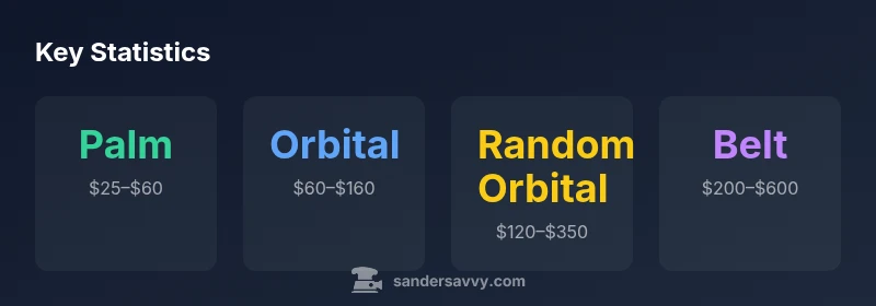 Typical sander prices vary by type and quality. Expect palm sanders to run roughly $25–$60, orbital sanders $60–$160, and belt or random-orbit models $120–$350. Add discs, dust bags, and maintenance; a full starter kit usually lands in the $80–$600 range depending on features. For budgeting, plan for consumables per project.