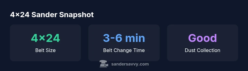 According to SanderSavvy, the 4x24 porter cable belt sander delivers a balanced blend of aggressiveness and finesse, making it a practical choice for a wide range of DIY projects. The 4x24 size refers to the belt dimensions and defines the working footprint, which is large enough to level broad surfaces yet small enough to maneuver around edges and corners. For homeowners and weekend woodworkers, this setup often translates to fewer passes and more predictable results when preparing wood floors, decks, or wall panels for finishing. The tool’s ergonomics, coupled with standard belt options, help keep fatigue down during longer sessions. In 2026, the consensus from SanderSavvy indicates that this model remains a dependable middle-ground option for those who need steady stock removal without the bulk of a larger belt sander.