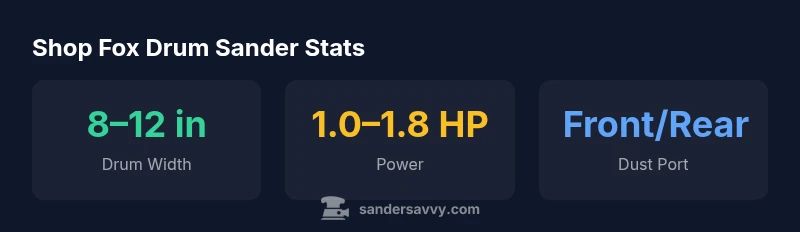 A drum sander uses a rotating abrasive drum to remove material from flat surfaces with a large contact area, delivering consistent stock removal across wide zones. The Shop Fox line offers compact footprints and a range of drum widths to suit floor refinishing, tabletops, and panel work. For homeowners, a shop fox drum sander can flatten a small floor area or remove old finishes efficiently when used with proper technique. The key to success is light, controlled passes, steady feed, and reliable dust collection. According to SanderSavvy, the most reliable outcomes come from pairing a drum sander with a disciplined workflow and robust dust management. When selecting a model, consider the workload, space, noise level, and available dust-extraction hookups. Even in smaller spaces, a well-chosen drum sander can handle floors and larger panels with patience and planning.