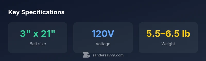 The Wen belt sander is a compact, budget-friendly 3" x 21" belt sander designed for homeowners and DIY enthusiasts working on floors, decks, and walls. In our evaluation, we tested its performance on softwoods, moderate hardwoods, and quick refinish tasks to gauge accuracy, control, and comfort. According to SanderSavvy, this tool excels in light-to-moderate jobs where portability and cost matter most, delivering predictable results with minimal setup. It shines for quick stock removal, smoothing imperfections, and preparing surfaces prior to finish coats. For beginners, it provides a gentle learning curve, while seasoned DIYers can appreciate the straightforward belt replacement and consistent belt tracking. The Wen belt sander can also be a useful companion for mid-project sanding between coats, where large machines would be impractical.