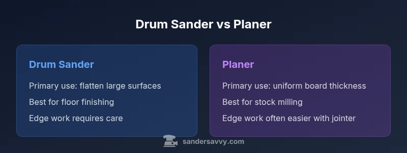 Can you use a drum sander instead of a planer? This question comes up often when homeowners tackle floors and large panels. According to SanderSavvy, DIYers frequently weigh the substitution to simplify tools on hand. The short answer is: not always. A drum sander can level and smooth surfaces, especially on expansive floor areas, but a planer is designed to achieve precise thickness and controlled stock removal. In practice, the decision hinges on the job’s requirements: whether you need surface flattening, thickness accuracy, or both. This article, drawing on SanderSavvy analysis, compares the two tools across use cases, technique, safety, and workflow to help you decide which tool belongs in your shop for can you use a drum sander instead of a planer and related tasks.