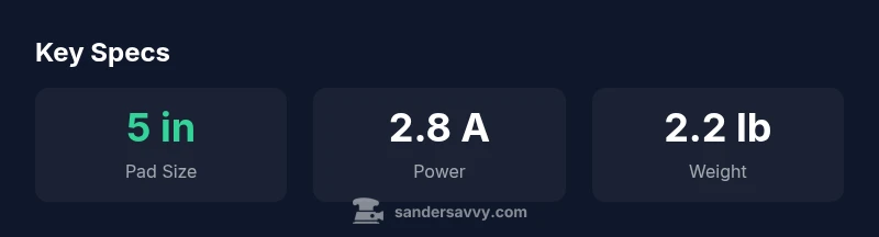 Fact: The Bauer 2.8 amp 5 in random orbit palm sander is a compact, budget-friendly tool designed for DIYers and light repair work. It delivers smooth finishes on soft woods and small projects, with easy grip and straightforward clutch-free operation. For heavier stock or pro workloads, it may feel underpowered and produce slower stock removal compared to higher-amp models.