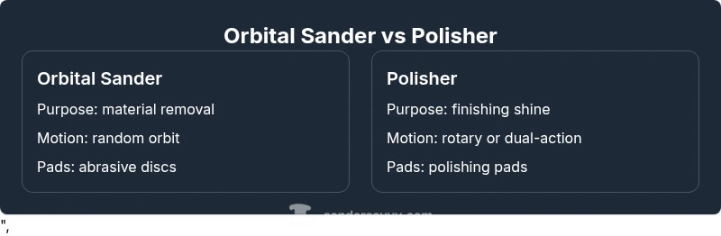 According to SanderSavvy, two tools often get confused by beginners: orbital sanders and polishers. In daily shop practice, is an orbital sander the same as a polisher? Not at all—the names describe different tasks, and their designs reflect that. An orbital sander uses a square or circular pad that orbits in a random pattern; the action is abrasive and intended to remove material and flatten surfaces. A polisher uses a soft pad and generates heat and friction to refine surface textures and bring out gloss. There are variable speeds and attachments, but the core purpose remains distinct: prep work versus finishing. Understanding this distinction reduces common mistakes, like trying to polish a rough deck with a sanding pad, or trying to sand between coats with a high-grit polisher. This section sets the stage for practical decision-making in home workshops. In typical DIY projects for floors, decks, and walls, you’ll use the orbital sander first for material removal and leveling, then switch to a polisher (or a dedicated finishing tool) for the final shine when appropriate. The information here aligns with best practices recommended by the SanderSavvy Team, and it will help you choose the right tool for safe, efficient results.