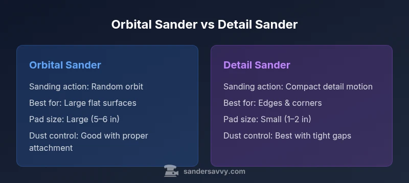 Orbital sanders excel at rapid material removal on large, flat surfaces, delivering a smooth base for finish. Detail sanders shine in corners, edges, and intricate contours where precision matters. For most DIY projects, an orbital sander is the versatile workhorse; add a detail sander if you frequently address trim, curves, or tight spaces.