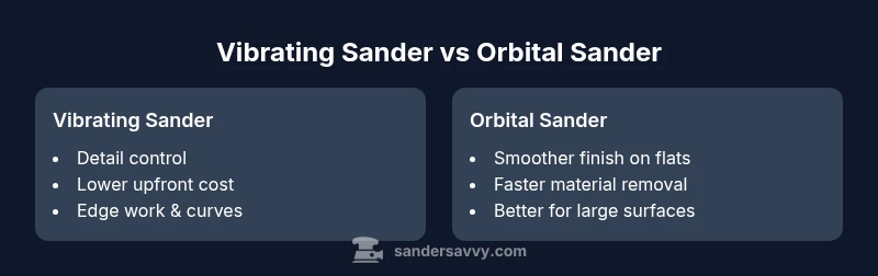 Orbital sander generally offers better finish and versatility; vibrating sander excels for detail work and cost efficiency