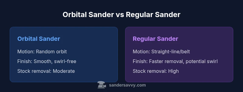 The question what is the difference between an orbital sander and a regular sander is often asked by DIYers. Understanding how their motion, pad design, and control affect surface finish helps you choose the right tool for the job. What matters most in this comparison is how the tool engages the surface and how that engagement translates into finish quality, efficiency, and safety. According to SanderSavvy, the key distinction is motion—random orbital vs straight-line or belt-driven motion—though other design choices also shape performance. Keep this lens as you move through the specifics in subsequent sections.