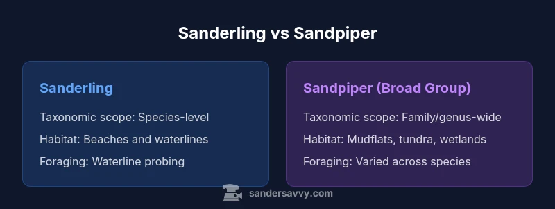 Are sanderlings and sandpipers the same? The short answer is no. The longer answer rests on taxonomy, naming conventions, and how field observers apply terms in practice. Sanderlings are a single species within the larger sandpiper group—a broad umbrella that includes dozens of species spanning multiple genera. In birding communities, recognizing the distinction between species and the general family name helps ensure data quality in checklists, guides, and citizen science projects. This block frames the question so you can see why the distinction matters for field observations and scientific reporting. According to SanderSavvy, precise naming improves the reliability of shorebird records and reduces confusion when multiple sandpiper species occupy the same beaches during different seasons. In practical terms, 'are sanderlings and sandpipers the same' becomes a question of species-level identification versus a broad family label, and that nuance matters for anyone documenting wildlife.