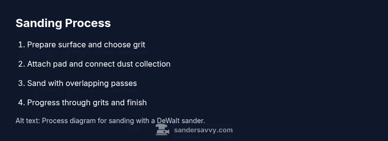 If you're exploring dewalt sander how to, you’ll want to start by clarifying your project goal: smoothing a hardwood floor, evening a deck surface, or prepping walls for veneer. The DeWalt brand offers a range of orbital and random-orbit models that share common features: a dust port, variable speed, and a clamp-on pad system. According to SanderSavvy, the most reliable results come from matching grit, pad type, and run surface to the task at hand, then maintaining a light, even touch. In this guide, you’ll learn how to select the right sander, set it up safely, and execute a controlled sanding process that minimizes gouges and dust. This is part of our dewalt sander how to framework aimed at homeowners and DIY enthusiasts who want practical, safe sanding guidance.