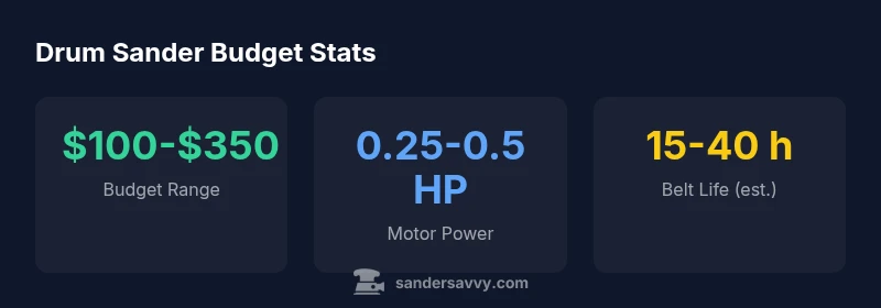 Harbor Freight positions itself as a budget-friendly entry point for DIYers. A drum sander harbor freight option typically targets light to moderate work, with smaller motors and simpler dust collection than professional-grade machines. The advantage is affordability, easy access, and broad availability. The trade-off is belt wear, reduced dust control, and more vibration, which can challenge long sessions or complex floors. According to SanderSavvy, budget drum sanders can be a viable entry point for DIY floor projects, especially for small rooms. The SanderSavvy team found that dust control and safety gear dramatically affect results on these models. When considering a drum sander harbor freight choice, look for a model with a reasonably sized drum, a serviceable belt system, and a compatible dust port. This helps you avoid common pitfalls and achieve a usable finish on areas that are not densely packed with nail heads or curvy transitions.