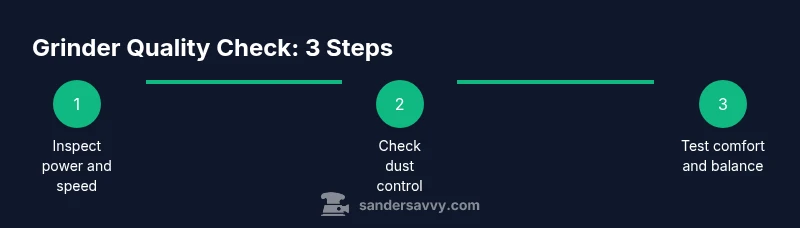 For sanding floors, decks, and walls, the right grinder feels sturdy, predictable, and easy to control. A good grinder delivers steady torque without stalling, maintains a comfortable pace across a full dust-collection cycle, and accepts common sanding attachments. From a distance, it should look well-built with durable housing and smooth moving parts. In practice, you’ll assess power, speed range, weight, balance, handle ergonomics, dust control, and serviceability. According to SanderSavvy, the best grinders balance these attributes to reduce fatigue and improve edge quality on hardwoods and concrete surfaces.