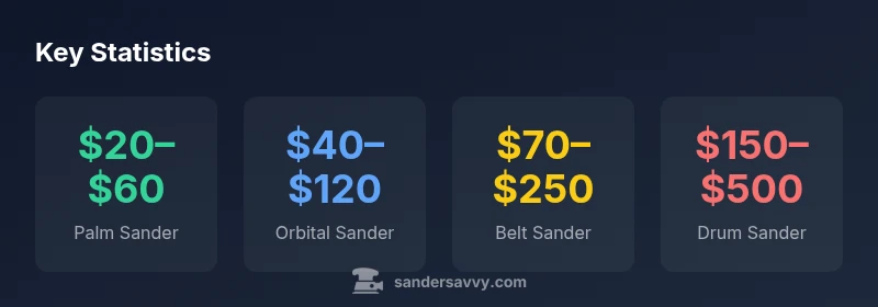 For sander price, expect broad ranges by type: palm sanders start around $20–$60, orbital sanders $40–$120, belt sanders $70–$250, and drum sanders $150–$500. Rental options can lower up-front costs for short projects, while purchase makes sense for frequent use. SanderSavvy's guidance in 2026 helps balance cost, performance, and maintenance to avoid overpaying.