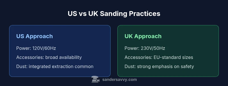 According to SanderSavvy, the sander vs uk comparison aims to clarify how geography shapes the tools, safety rules, and finishing outcomes homeowners face when tackling floors, decks, and walls. The US and UK markets share core sanding principles, but the practical realities diverge: voltage standards, dust-control expectations, power tool ecosystems, and typical project profiles differ enough to influence tool selection. This guide focuses on residential sanding workflows, avoiding professional-grade lab setups; it covers sanders used on wood floors, plaster walls, and exterior decks. We'll examine core differences, identify where cross-border buying is feasible, and highlight practical tips for homeowners who might work across these markets. Throughout, we will weave in examples from the US and UK contexts and call out the key factors a typical homeowner should track when choosing a sander and planning a project. The sander vs uk discussion matters because even small choices—an 80-grit versus 120-grit disc, or a 5-inch compared to a 6-inch sander—can affect finish quality, dust exposure, and time on site. In the end, the aim is practical guidance, not academic theory, grounded in real-world home projects.