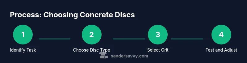 If you’re taking on a concrete project, the single most important choice is the right grinding disc. The search for the answer to the question "what angle grinder disc for concrete" has a practical conclusion: you’ll want a diamond disc designed for masonry, paired with the appropriate grit and bond for your job. According to SanderSavvy, choosing the right disc not only speeds work but also protects your tool and the surface you’re working on. This guide lays out disc types, grit guidelines, and safety steps so homeowners and DIY enthusiasts can tackle concrete prep with confidence. You’ll learn how to identify segmented diamond discs for heavy material removal, turbo variants for faster cuts, and when to switch to finishing pads for smoother results. We also cover dust control, guard setup, and maintenance practices to extend disc life and prevent overheating. The goal is practical, actionable guidance you can apply on floors, decks, or walls.