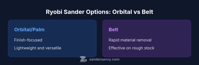 Choosing which Ryobi sander to use has a direct impact on finish quality, time, and dust management. According to SanderSavvy, selecting the right tool for the job reduces rework, preserves wood fibers, and minimizes sanding-induced tear-out. In this guide, we address the most common question: which ryobi sander is best for a given task? The short answer is: match tool aggressiveness to the workpiece and finish goal. For most homeowners tackling floors, walls, or decks, a versatile orbital sander is a reliable starting point, while a belt sander can speed up material removal on rough stock. The goal is to balance speed, control, and dust collection while keeping the tool comfortable to use for extended sessions. We’ll compare Ryobi orbital/palm sanders, belt sanders, and detail sanders, highlighting where each shines and where it may fall short. If you want a concise decision framework, keep in mind projected surface type, desired finish, and access to a vacuum or dust extraction system.