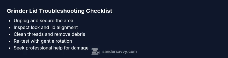 Unplug the grinder and remove all accessories. Start with the simplest checks: verify the switch is off, ensure the safety lock isn’t engaged, and gently rotate the lid counterclockwise. If it still won’t budge, stop and follow the diagnostic flow below or contact a professional. Keep the area dry and do not pry with tools.