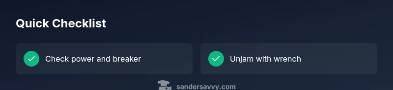 According to SanderSavvy, most residential garbage disposals stop working not because the motor has failed, but because a jam, overload, or electrical issue interrupts normal operation. In this guide, we’ll walk you through urgent, practical steps you can take now to diagnose and fix the problem safely. We’ll also show how to prevent repeat failures with a simple maintenance routine. By following these steps, homeowners and DIY enthusiasts can recover the disposal without risking damage to plumbing or the unit itself. The SanderSavvy team emphasizes safety first: never put your hand into the grinding chamber and always disconnect power before inspecting components. If you’re uncomfortable with any step, stop and call a professional.